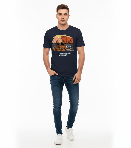 T-shirt Star Wars – Jawas & Sandcrawler "Où a-t-on garé ?" – Design Humour Officiel